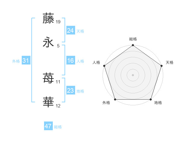 藤永 苺華さんを姓名の画数から五運を鑑定
