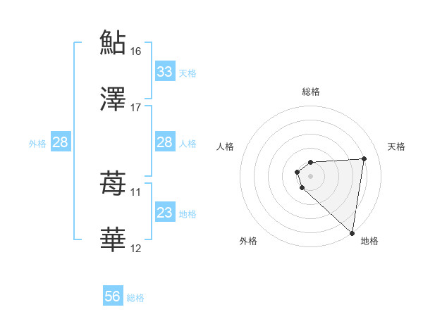 鮎澤 苺華さんを姓名の画数から五運を鑑定