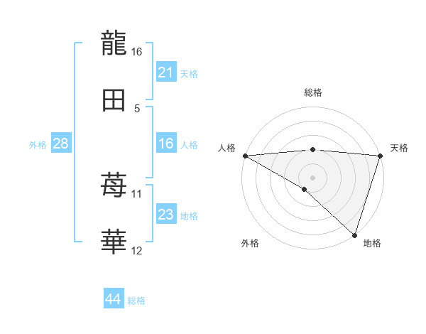 龍田 苺華さんの総格は44画の2点!