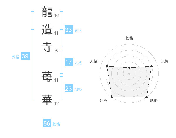 龍造寺 苺華さんを姓名の画数から五運を鑑定