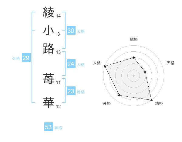 綾小路 苺華さんの総格は53画の3点!