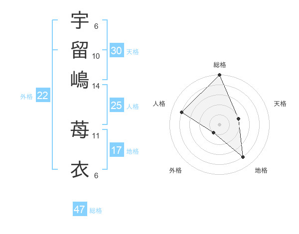 宇留嶋 苺衣さんの総格は47画の5点!
