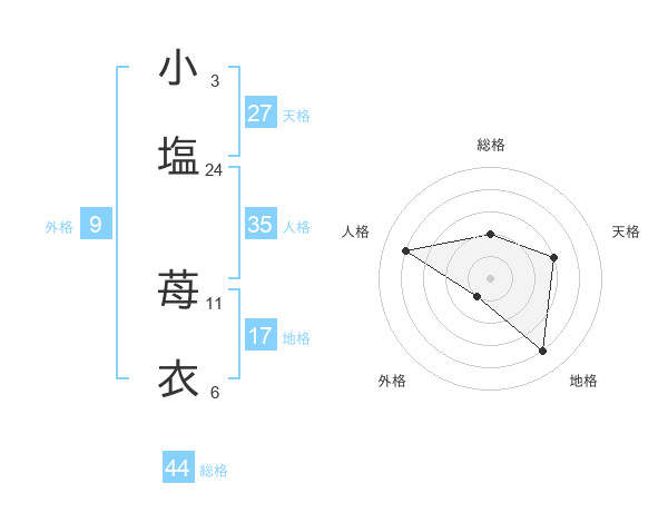 小塩 苺衣さんの総格は44画の2点!