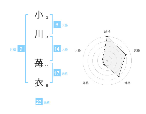 小川 苺衣さんを姓名の画数から五運を鑑定