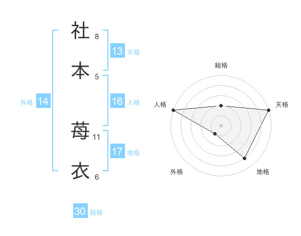 社本 苺衣さんの天格は13画の5点!