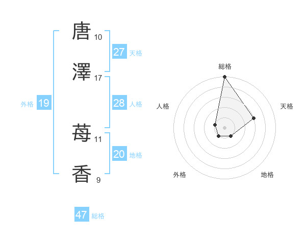 唐澤 苺香さんの総格は47画の5点!