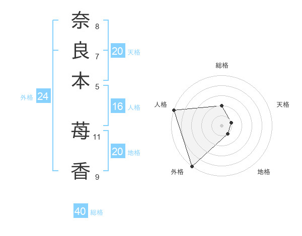 奈良本 苺香さんを姓名の画数から五運を鑑定