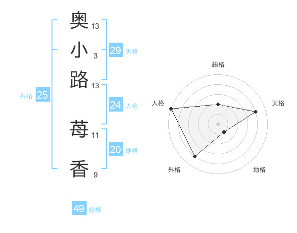 奥小路 苺香さんを姓名の画数から五運を鑑定