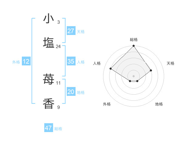 小塩 苺香さんの総格は47画の5点!