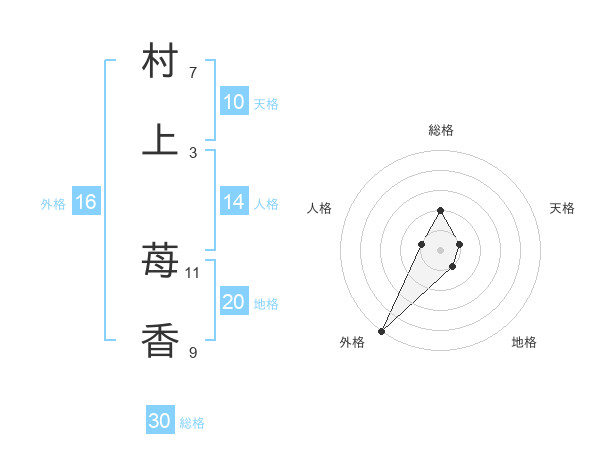 村上 苺香さんの総格は30画の2点!