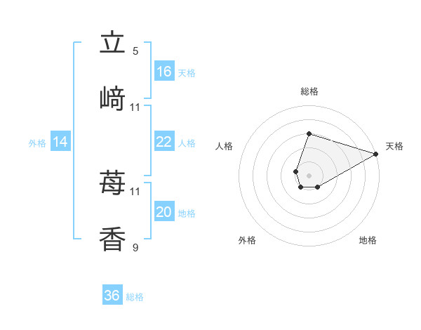 立﨑 苺香さんを姓名の画数から五運を鑑定