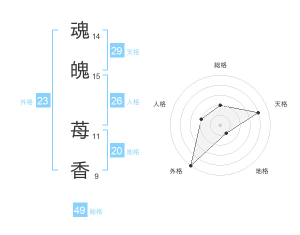 魂魄 苺香さんの総格は49画の2点!