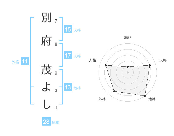 別府 茂よしさんを姓名の画数から五運を鑑定