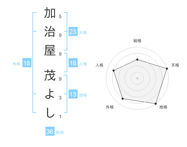 加治屋 茂よしさんの天格は23画の5点!