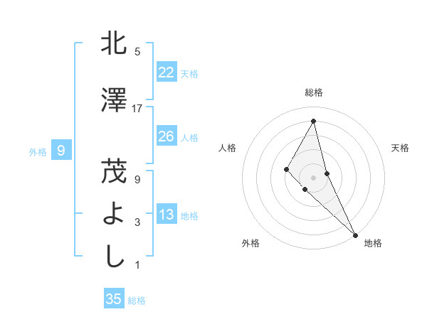 北澤 茂よしさんを姓名の画数から五運を鑑定