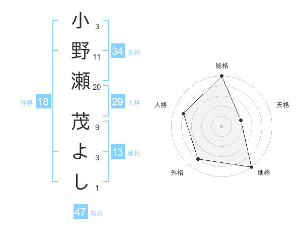 小野瀬 茂よしさんを姓名の画数から五運を鑑定