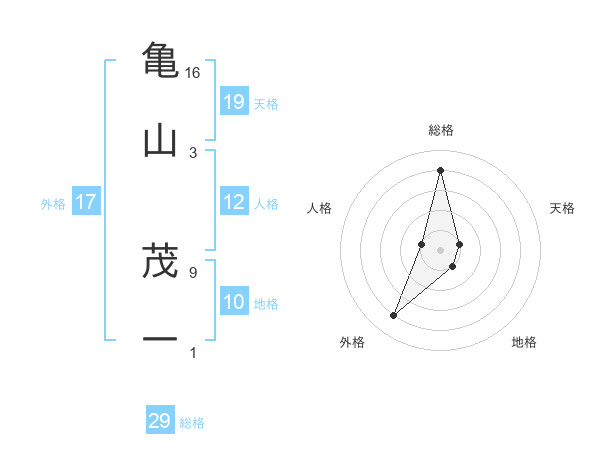 亀山 茂一さんを姓名の画数から五運を鑑定