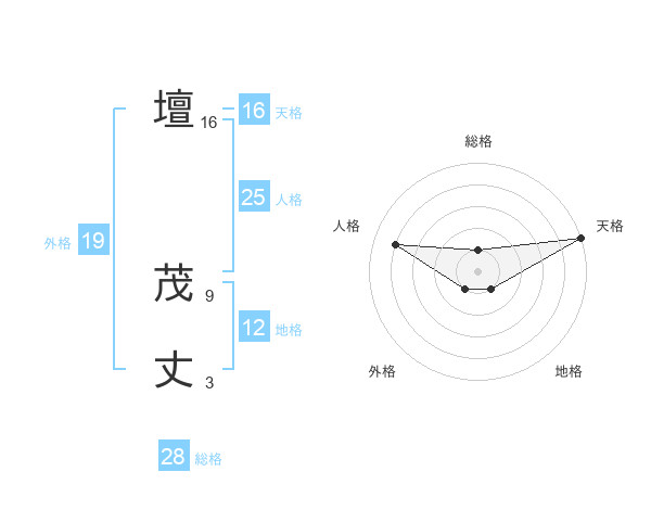 壇 茂丈さんの天格は16画の5点!