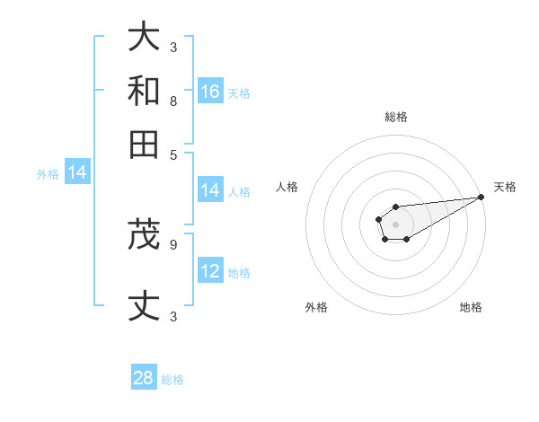 大和田 茂丈さんの天格は16画の5点!