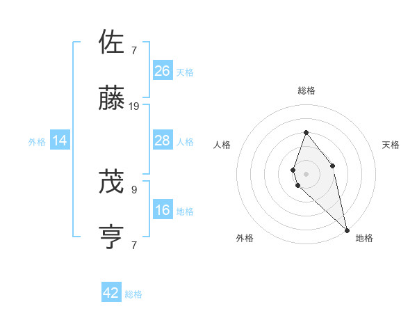 佐藤 茂亨さんを姓名の画数から五運を鑑定