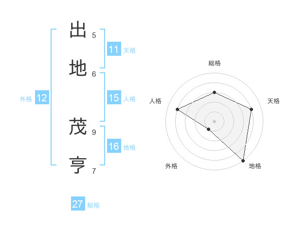出地 茂亨さんの地格は16画の5点!