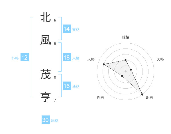 北風 茂亨さんの総格は30画の2点!
