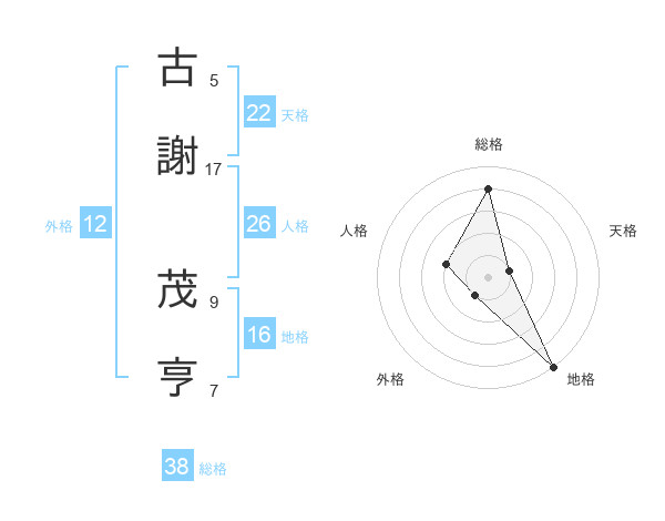 古謝 茂亨さんを姓名の画数から五運を鑑定