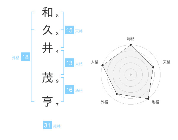 和久井 茂亨さんを姓名の画数から五運を鑑定