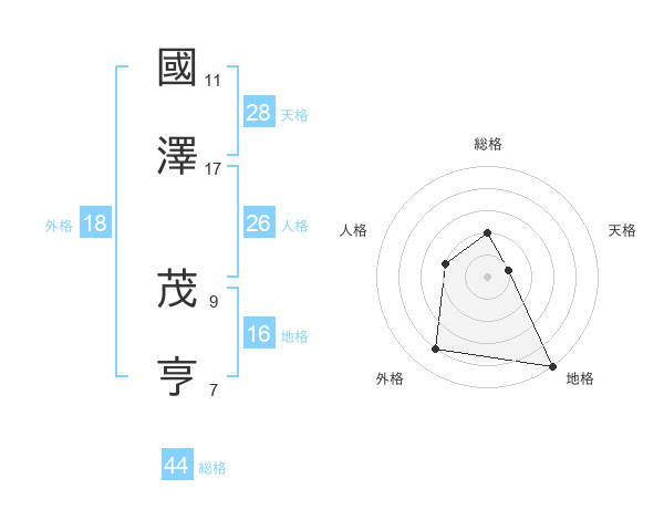 國澤 茂亨さんを姓名の画数から五運を鑑定