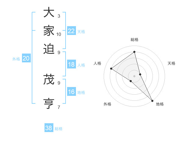 大家迫 茂亨さんの総格は38画の4点!