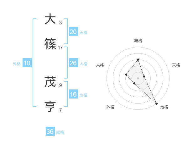 大篠 茂亨さんの総格は36画の3点!