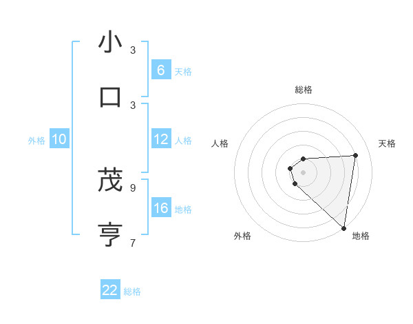 小口 茂亨さんの総格は22画の1点!