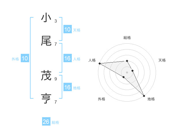 小尾 茂亨さんの総格は26画の2点!
