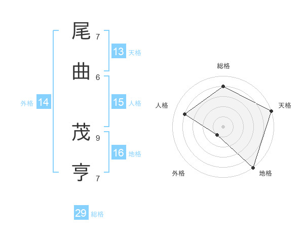 尾曲 茂亨さんの総格は29画の4点!