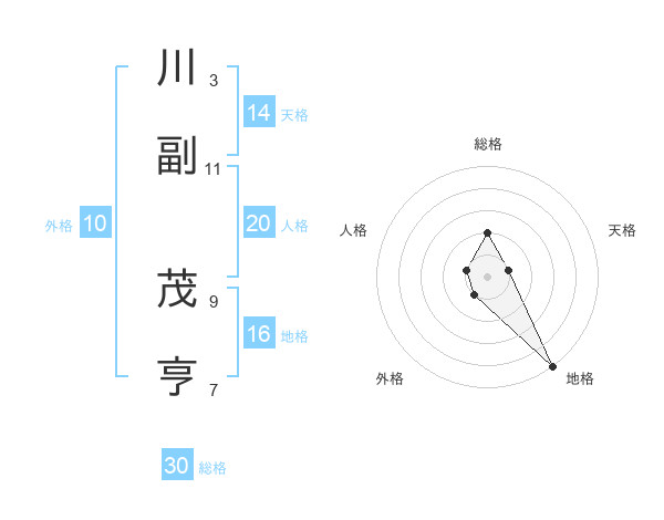 川副 茂亨さんを姓名の画数から五運を鑑定