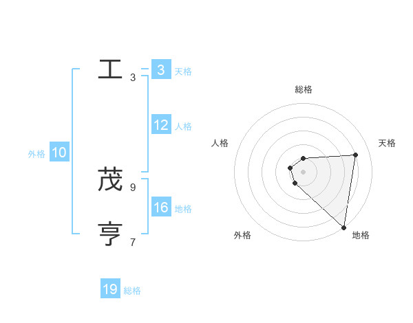 工 茂亨さんの総格は19画の1点!