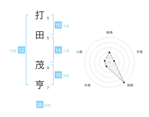打田 茂亨さんの総格は26画の2点!