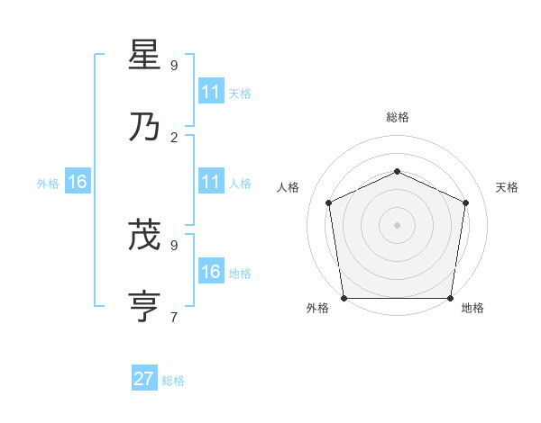 星乃 茂亨さんを姓名の画数から五運を鑑定