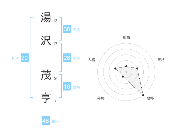 湯沢 茂亨さんを姓名の画数から五運を鑑定