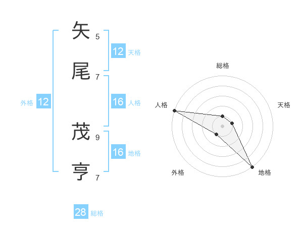 矢尾 茂亨さんを姓名の画数から五運を鑑定