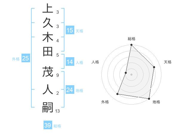 上久木田 茂人嗣さんを姓名の画数から五運を鑑定