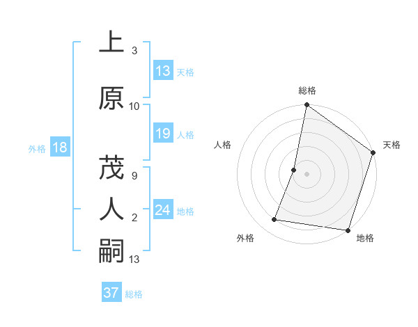 上原 茂人嗣さんを姓名の画数から五運を鑑定