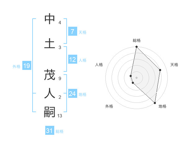 中土 茂人嗣さんを姓名の画数から五運を鑑定