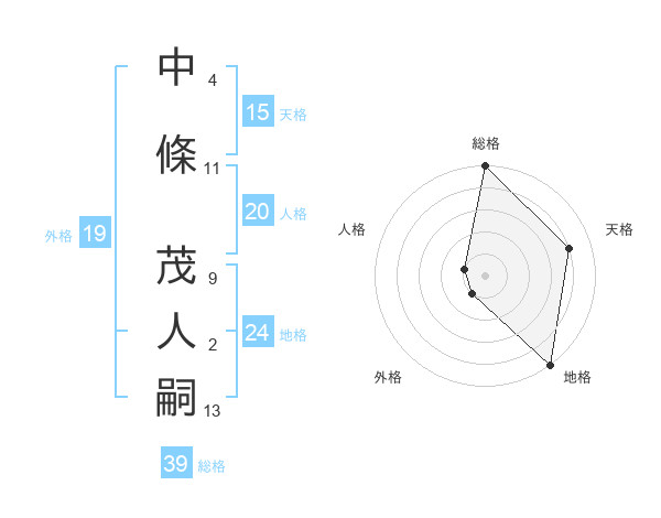 中條 茂人嗣さんを姓名の画数から五運を鑑定