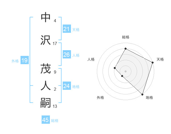 中沢 茂人嗣さんを姓名の画数から五運を鑑定