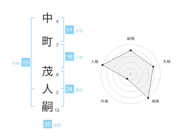 中町 茂人嗣さんの総格は35画の4点!