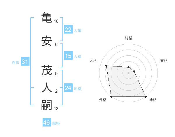 亀安 茂人嗣さんの外格は31画の5点!