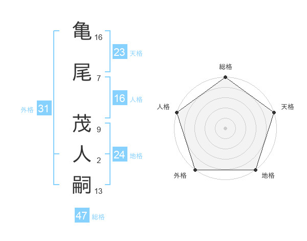 亀尾 茂人嗣さんを姓名の画数から五運を鑑定