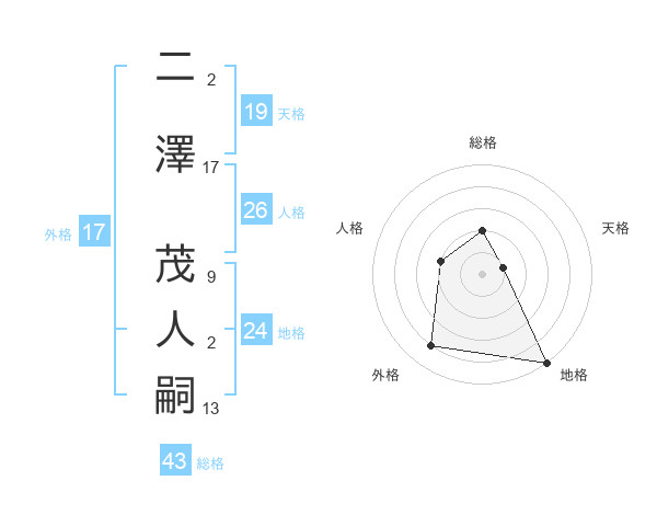 二澤 茂人嗣さんの外格は17画の4点!