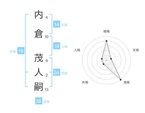 内倉 茂人嗣さんを姓名の画数から五運を鑑定